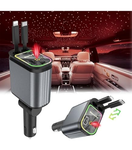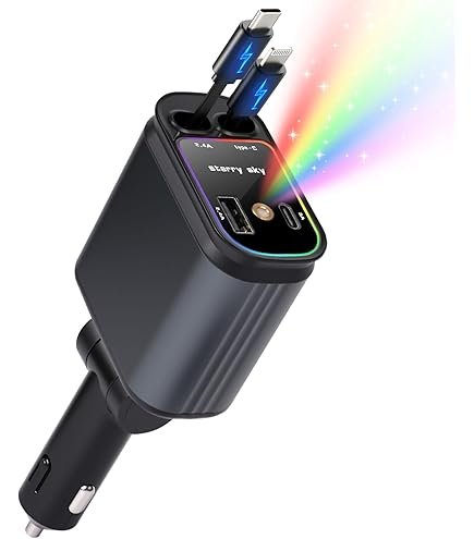 • 🔌 4 في 1 بدون فوضى: كابل Type-C وكابل Lightning (آيفون) قابلان للسحب + منفذ USB ومنفذ Type-C إضافيين.