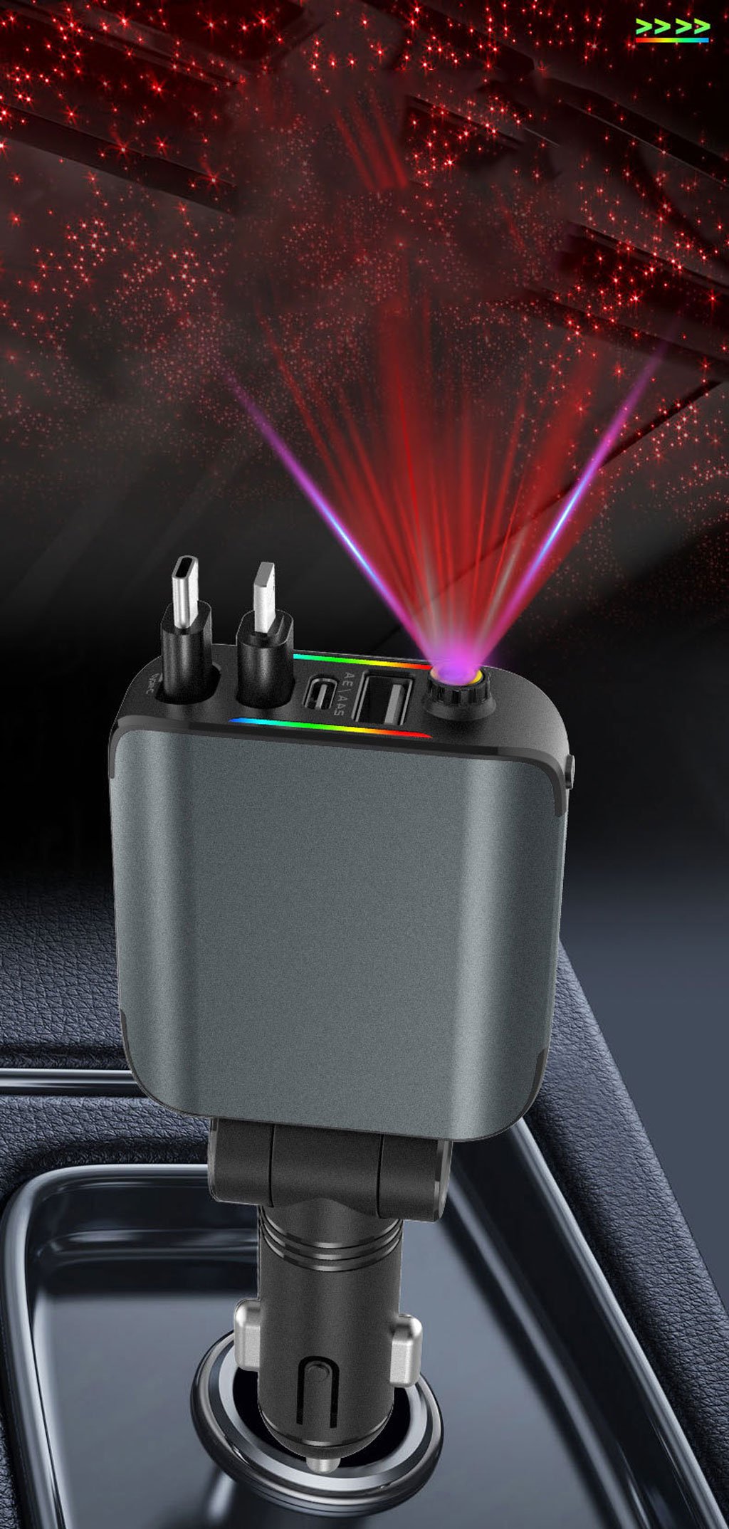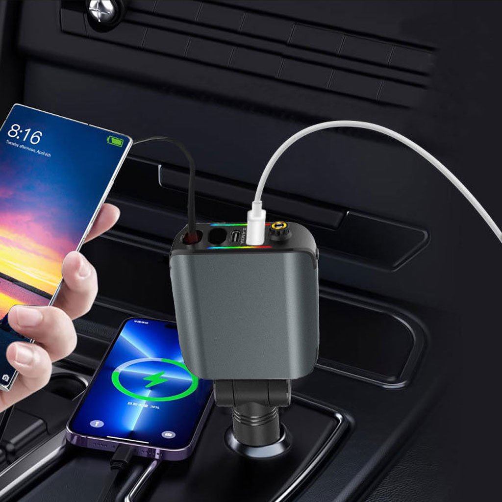 قل وداعاً للانتظار الطويل وبطاريات الهاتف الفارغة. شاحن السيارة 4 في 1 بقدرة 120 واط هو محطة الطاقة التي تحتاجها داخل مركبتك. صُمم خصيصاً ليجمع بين السرعة المطلقة والتنظيم الفائق والجمالية الراقية، مما يجعله الإضافة المثالية لسيارتك.