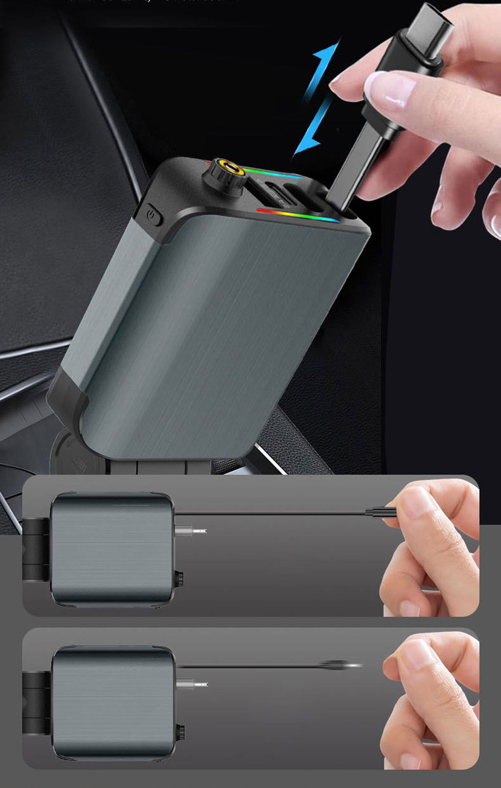 - نهاية عصر الأسلاك المتشابكة! يأتي الشاحن بكابلين مدمجين (Type-C و Lightning) يمتدان وينسحبان تلقائياً بلمسة واحدة (طول تقريبي 80 سم).